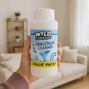 Wild Tornado Sink & Drain Cleaner is a powerful cleaning solution designed to remove stubborn clogs, grease, hair, and dirt buildup in kitchen sinks, bathroom drains, and pipes. It works by dissolving blockages with its strong foaming action, helping water flow smoothly again without the need for professional plumbing services.